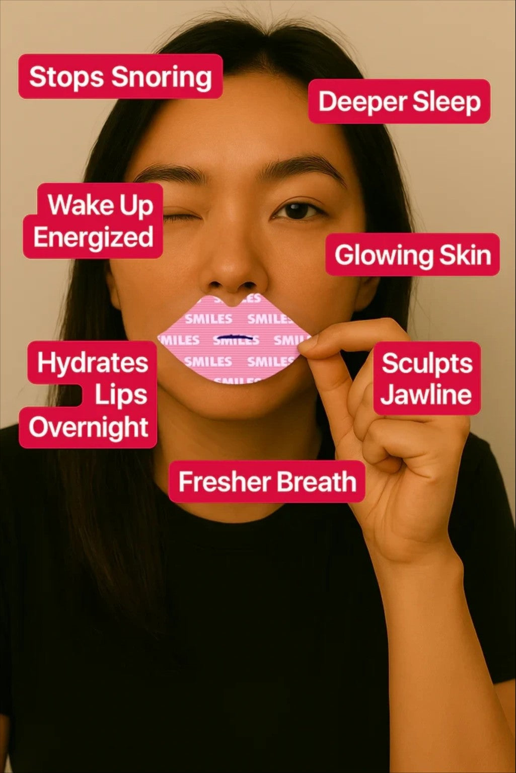 Smiles helps reduce snoring and promotes deeper, uninterrupted sleep so you wake up feeling refreshed and energized. By supporting nasal breathing, it increases oxygen delivery to your brain, improving clarity and easing brain fog. It also helps limit bacteria in the mouth, lowering the risk of gum disease and cavities. At the same time, it strengthens your immune system by filtering toxins and restoring balance through truly rejuvenating rest. Plus, our bioactive blend of collagen, vitamins, and antioxidants works overnight to renew your skin—leaving you with a radiant morning glow.